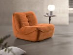 “Playful curves meet deep, sink in comfort in the Tangerine Wedge. Sculpted from a vivid tone that brings instant warmth to any space, it’s compact, modern, and full of flavour a seat that lifts the whole room.”